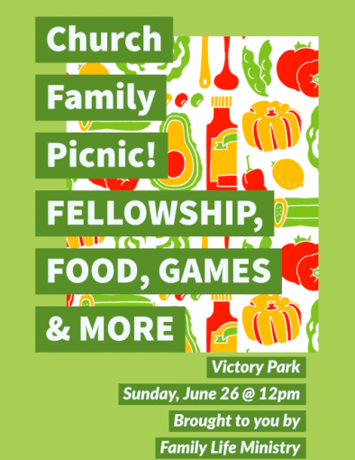 It's time for our Summer Picnic! You, your family and friends are all invited to join us at Victory Park in Pasadena for a potluck picnic, fellowship and games on Sunday, June 26 @ 12:00PM.